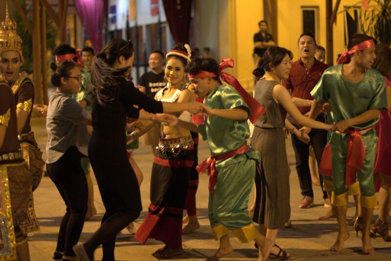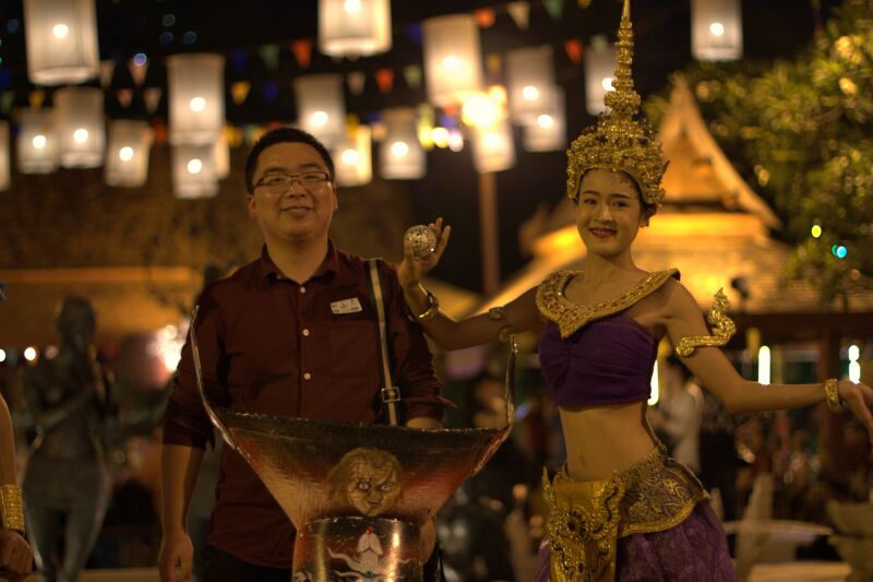 第一天早上七點(diǎn)鐘,大家搭乘旅游大巴前往寧波機(jī)場,一路上歡聲笑語,甚是融洽!中午12:30,航班準(zhǔn)時(shí)起飛,經(jīng)過長達(dá)四個(gè)半小時(shí)的飛行到達(dá)曼谷廊曼機(jī)場。一出機(jī)場,熱情的泰國妹子為我們戴上鮮花,并對我們說一句“薩瓦迪卡”,意為祝福平安。隨后當(dāng)?shù)氐膬晌粚?dǎo)游帶領(lǐng)我們分別上了兩輛大巴,經(jīng)過近一個(gè)小時(shí)的車程,我們到達(dá)第一站——暹羅夢幻劇場,在這里我們和大象合影,并欣賞了泰國獨(dú)特的民族風(fēng)情舞蹈。之后,進(jìn)入泰國規(guī)模最大的宏偉華麗劇院觀賞世界級的泰國藝術(shù)和文化遺產(chǎn)表演,深入地了解泰國四個(gè)朝代和各個(gè)部域民村的“泰國農(nóng)村”生活、傳統(tǒng)、文化以及藝術(shù)和手工藝。