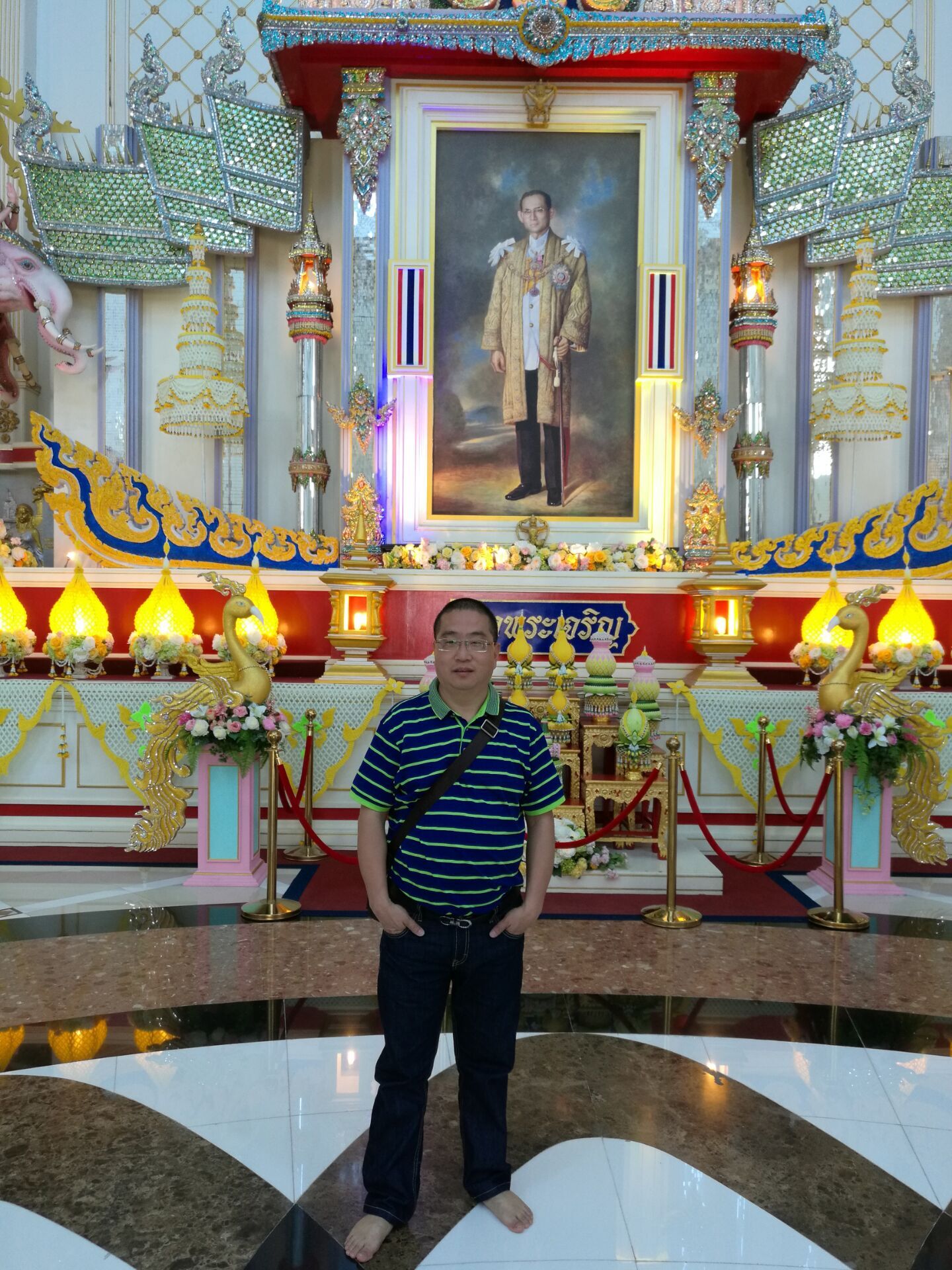在泰國國王畫像前留影 周總夫婦