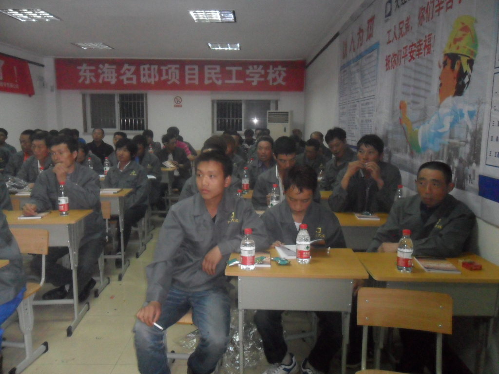 簡短的開學(xué)典禮后,項目部給民工們上了第一堂課《建筑業(yè)農(nóng)民工務(wù)工常識》。