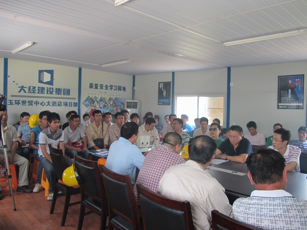 活動(dòng)相關(guān)人員在對(duì)施工現(xiàn)場(chǎng)進(jìn)行實(shí)地參觀體驗(yàn)后,在現(xiàn)場(chǎng)會(huì)議室召開(kāi)了交流會(huì),該工程項(xiàng)目經(jīng)理鄭敬革同志就如何抓好開(kāi)工前的準(zhǔn)備工作及健全安全管理體系、如何落實(shí)安全生產(chǎn)責(zé)任人及全面提高員工素質(zhì)、如何抓好安全生產(chǎn)和文明施工工作、如何做好項(xiàng)目的管理與團(tuán)隊(duì)建設(shè)等作了生動(dòng)的經(jīng)驗(yàn)交流。
