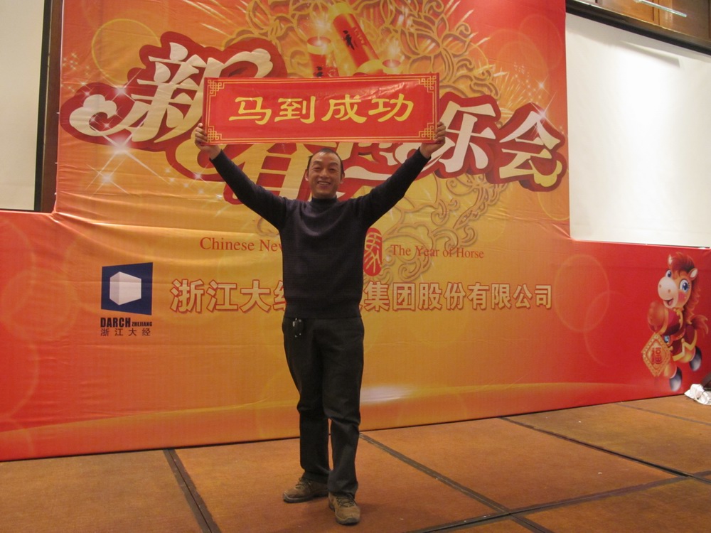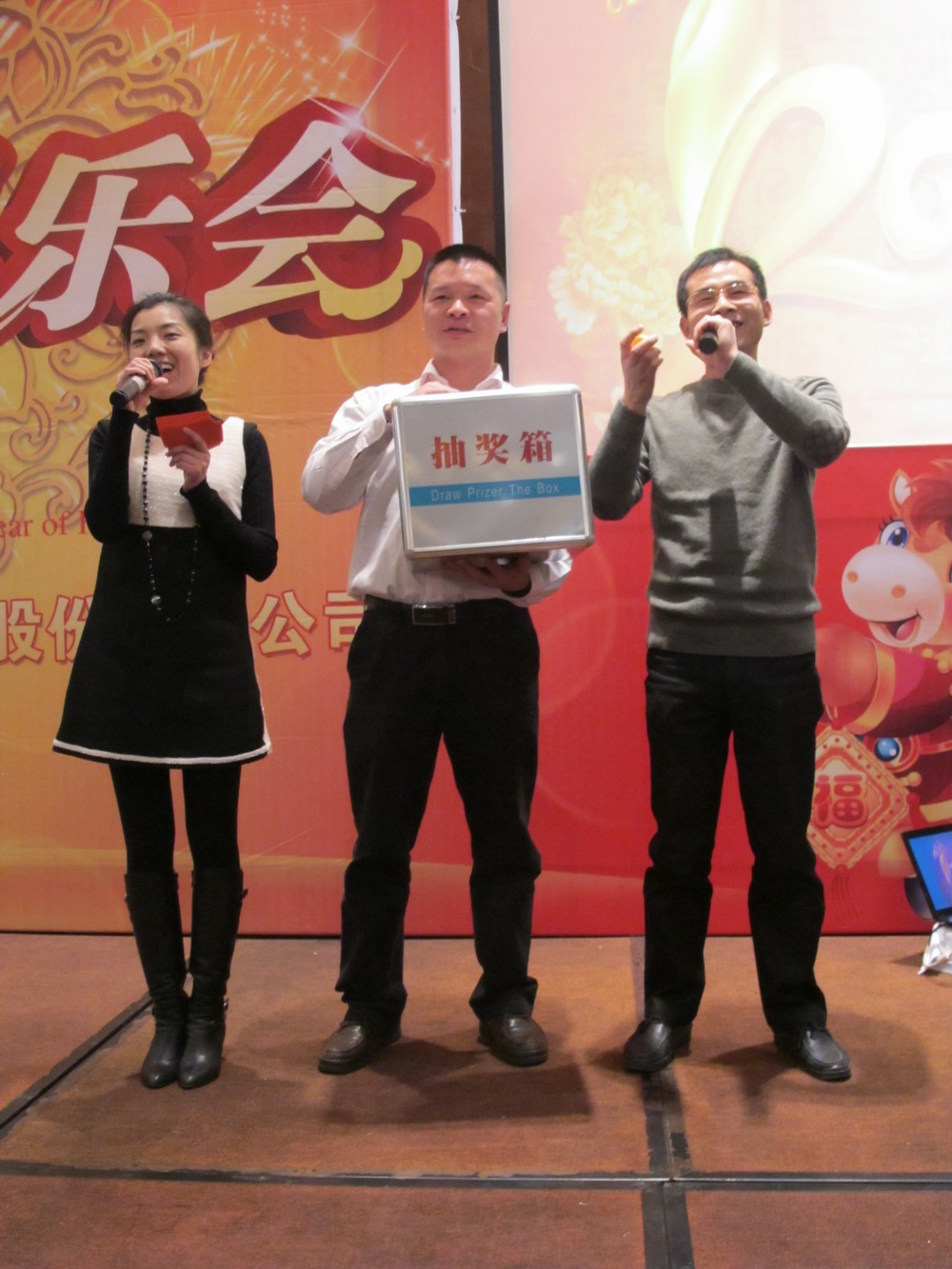 年會,最令人期待、最激動人心的時刻是抽獎環(huán)節(jié)。放眼望去,臺上擺滿了獎品,一等獎為mini ipad,二、三等獎均為價值不菲的名牌家紡。每個人都做好了心理準備,默祈大彩頭降臨自己。此外,為了增加抽獎的喜慶氣氛,今年的晚宴還別出心裁,規(guī)定中獎?wù)唔毣卮鸪鲋鞒秩颂岢龅膯栴}或者即興表演一個節(jié)目后才能領(lǐng)取獎品。但這并沒有難倒我們的獲獎?wù)撸麄?/span>或詩歌朗誦,或民族舞表演,或引吭高歌,絲毫不怯場,熱情參與的氛圍讓晚宴的氣氛達到了高潮。
