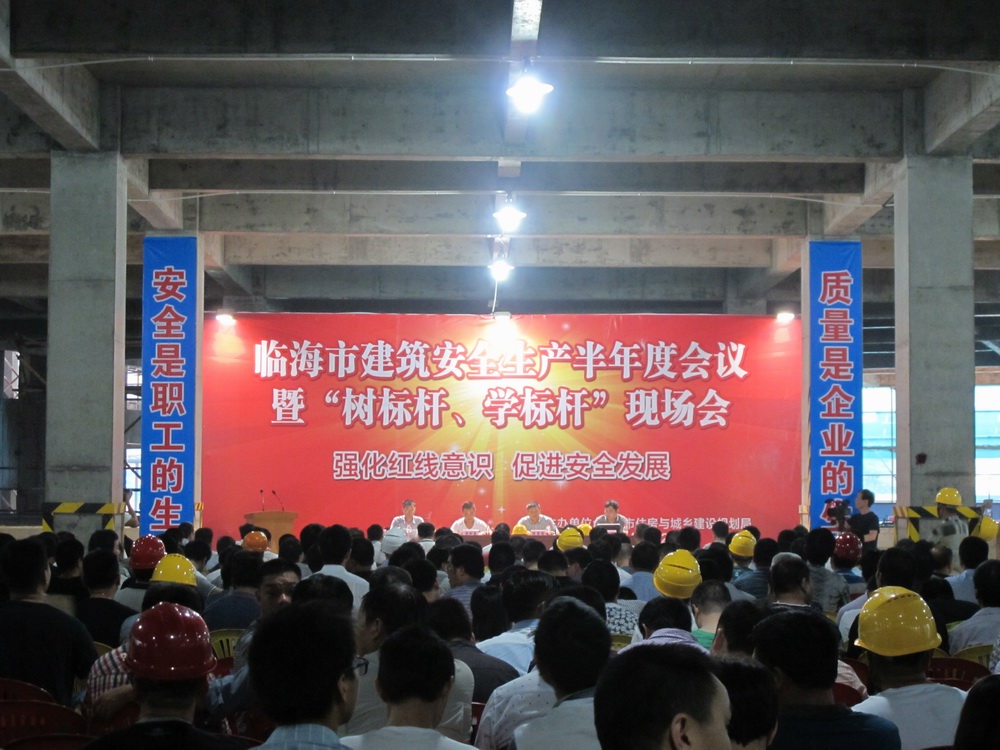 6月27日,臨海市住房與城鄉(xiāng)規(guī)劃局組織在我集團(tuán)公司承建施工的朗成大時(shí)代商住樓項(xiàng)目(2#、辦公樓、商業(yè)綜合樓)現(xiàn)場(chǎng)召開(kāi)臨海市建筑安全生產(chǎn)半年度會(huì)議暨“學(xué)標(biāo)桿、樹(shù)標(biāo)桿”現(xiàn)場(chǎng)會(huì),臨海市房屋建筑施工總承包企業(yè)的主要負(fù)責(zé)人、分管質(zhì)量安全負(fù)責(zé)人、監(jiān)理企業(yè)主要負(fù)責(zé)人、在臨施工外地企業(yè)分管質(zhì)量安全生產(chǎn)負(fù)責(zé)人及駐臨監(jiān)理企業(yè)負(fù)責(zé)人、在建工程項(xiàng)目負(fù)責(zé)人及項(xiàng)目總監(jiān)等近300余人參加了此次現(xiàn)場(chǎng)會(huì)。會(huì)議由市質(zhì)量監(jiān)督站站長(zhǎng)葉青主持,參加會(huì)議的領(lǐng)導(dǎo)有市住建局副局長(zhǎng)陳勇智、市安監(jiān)局副局長(zhǎng)周邦春、市建筑業(yè)管理局副局長(zhǎng)李春等。