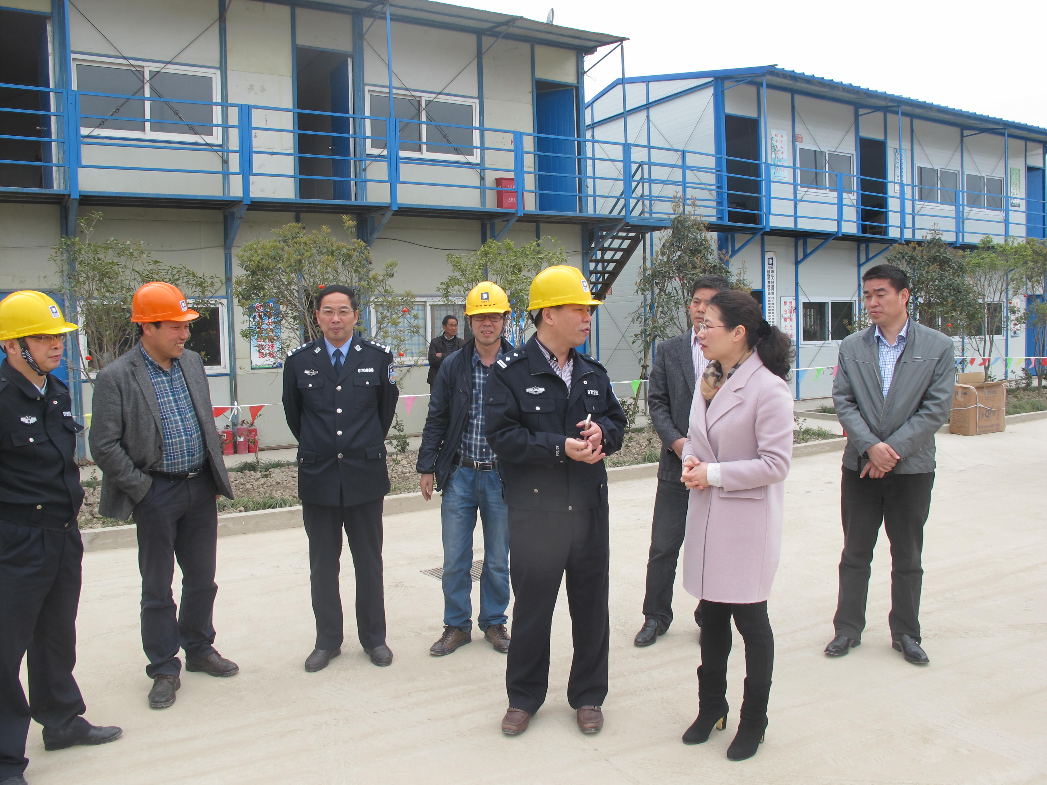 柯婉英副書記與交警大隊(duì)大隊(duì)長虞新安進(jìn)行深入交談,虞大隊(duì)長對(duì)施工進(jìn)度情況進(jìn)行匯報(bào)如下:該工程從開始到啟用需要兩年的時(shí)間,總建筑面積28594.2平方米(其中地下室5111.9 平方米),地下1層;主樓16層,高度70.8米;裙樓3層,高度20.1米;為框剪結(jié)構(gòu)。2014年12月29日開始動(dòng)工,工期550天?,F(xiàn)在樁基工程完成,馬上開始土方開挖,最快2015年年底結(jié)頂,2016年7月交付??赂睍浿赋鍪覂?nèi)設(shè)計(jì)裝修要與施工單位協(xié)接好,還要保持資金暢通,2017年上半年交警大隊(duì)建成將成為臨海指揮最高中心,集社會(huì)管理、服務(wù)、調(diào)節(jié)的功能為一體,更好地使司法、行政結(jié)合方便于民、服務(wù)于民。并同大經(jīng)集團(tuán)副總王國棉、項(xiàng)目經(jīng)理陳忠立進(jìn)行深切交談,柯婉英副書記肯定了大經(jīng)集團(tuán)的施工團(tuán)隊(duì),強(qiáng)調(diào)要在安全、質(zhì)量的前提下加快施工進(jìn)度。