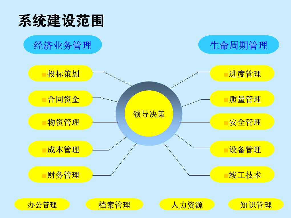 新中大URP工程軟件為建筑集團(tuán)整理體系管理和項目全過程管理體系提供了全面一體化解決方案,包括企業(yè)管理相關(guān)的財務(wù)管理、資金管理、人力資源管理、知識管理、辦公自動化管理、檔案管理,和綜合項目部相關(guān)的招標(biāo)管理、合同管理、成本管理、進(jìn)度管理、物資管理、質(zhì)量管理、安全管理、設(shè)備管理、竣工管理等各個模塊,包括在此基礎(chǔ)上數(shù)據(jù)挖掘與分析以及電子商務(wù)應(yīng)用,滿足工程企業(yè)聯(lián)盟體全面管理的需要。如圖: