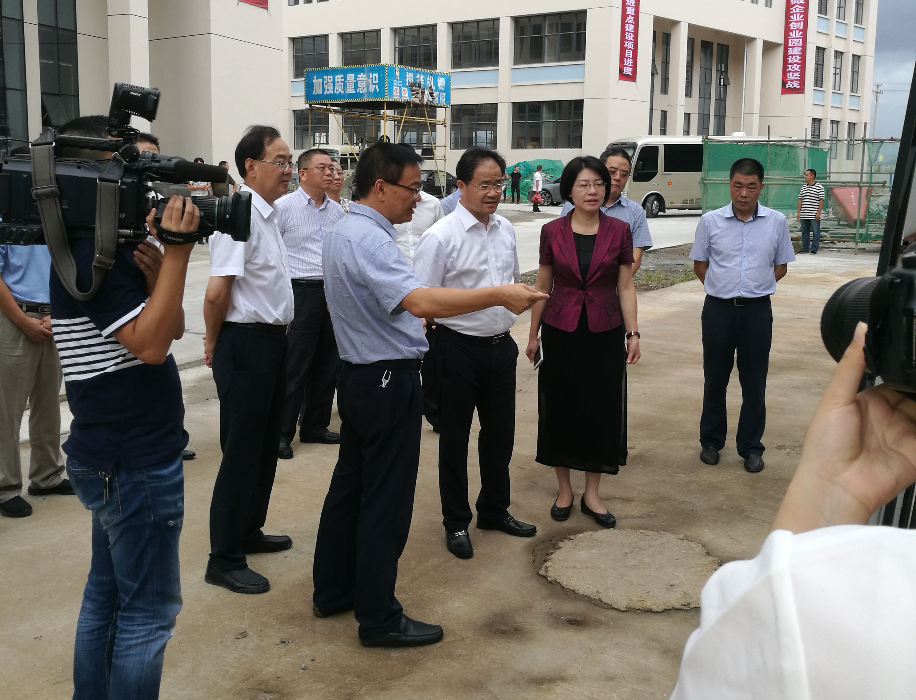9月27日下午,臺(tái)州市委書記王昌榮和臺(tái)州市委常委、秘書長(zhǎng)單堅(jiān)在仙居縣委副書記、縣長(zhǎng)林虹及縣委常委、經(jīng)濟(jì)開發(fā)區(qū)管委會(huì)黨組書記鄭旭東的陪同下,來(lái)到大經(jīng)集團(tuán)承建的仙居縣經(jīng)濟(jì)開發(fā)區(qū)永安工業(yè)集聚區(qū)標(biāo)準(zhǔn)廠房項(xiàng)目工地考察調(diào)研,集團(tuán)副總經(jīng)理黃愛平陪同。