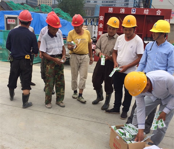 進入盛夏季節(jié),氣溫升高,這給正常施工帶來了諸多影響。為切實做好夏季防暑降溫工作,保障施工現場一線人員的身體健康,6月,集團公司向項目部一線人員發(fā)放了人丹、藿香正氣水、十滴水、風油精等防暑降溫藥品,有力促進了現場施工安全高效推進,激發(fā)了作業(yè)人員的愛崗敬業(yè)熱情。