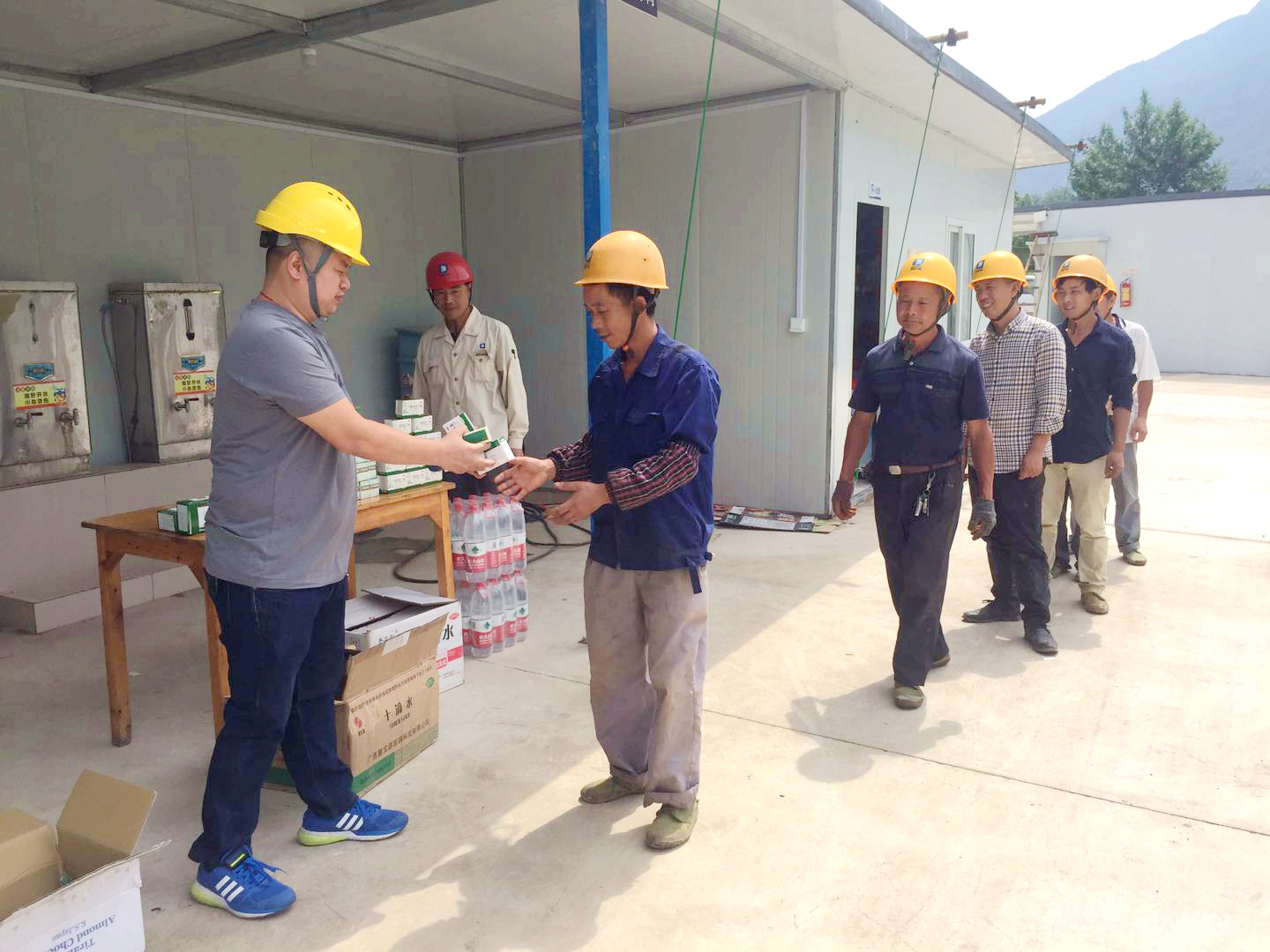 鑒于今年氣溫較高且持續(xù)時(shí)間長,為保障一線作業(yè)人員安全和健康,集團(tuán)要求項(xiàng)目部應(yīng)以人為本,切實(shí)關(guān)心一線作業(yè)人員,采取有效措施,確保將防暑降溫工作落到實(shí)處。同時(shí),項(xiàng)目部要積極做好防暑降溫、雨季施工、防暴防雷防臺(tái)、防食物中毒和消防安全工作,確保工人健康安全,并保障公司安全生產(chǎn)工作在惡劣環(huán)境“烤驗(yàn)”下平穩(wěn)進(jìn)行。