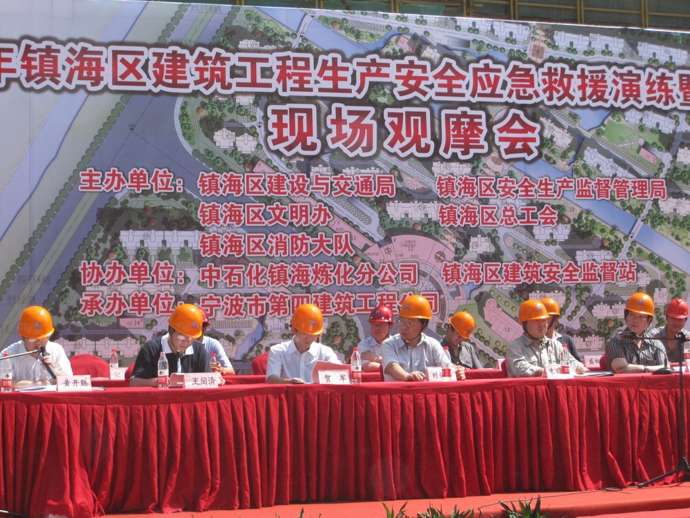 6月22日上午,為積極響應全國“安全生產(chǎn)月”活動號召,鎮(zhèn)海區(qū)人民政府在莊市街道寧四建項目部舉辦了建筑工程消防安全演練觀摩會,政府主管部門及煉油廠主要領(lǐng)導悉數(shù)出席,大經(jīng)集團鎮(zhèn)海分公司及各項目部組織人員觀摩本次演練,該演練是模擬一位電焊工從在15米外架從事電焊作業(yè)時,焊渣四濺從而導致安全網(wǎng)著火事件。本次演練目的是為了提高作業(yè)人員的消防安全意識及對火災撲救工作的組織和應急處理能力。在場人員認真觀摩本次消防演練,相信大家從中獲益匪淺,為預防及處理工地突發(fā)事件打下一個良好的基礎。